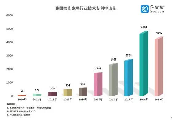 潛力巨大的“藍(lán)海”市場(chǎng)早已廠商云集,智能家居行業(yè)技術(shù)專利申請(qǐng)量迅速攀升。企查查數(shù)據(jù)顯示,我國(guó)智能家居相關(guān)專利申請(qǐng)總量早已破萬,2015年開始我國(guó)智能家居行業(yè)技術(shù)邁入快速發(fā)展期,2018年達(dá)到巔峰,數(shù)量達(dá)4863件,較2017年同比增長(zhǎng)了76%,2019年專利申請(qǐng)數(shù)稍減。由此可見,智能家居市場(chǎng)競(jìng)爭(zhēng)較為激烈,各路玩家步伐急促。