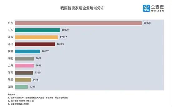 盡管我國(guó)智能家居行業(yè)發(fā)展起步較晚,但發(fā)展條件已經(jīng)基本成熟,各地布局也正緊鑼密鼓地進(jìn)行。企查查數(shù)據(jù)顯示,目前廣東、山東、江蘇、浙江等省份智能家居企業(yè)分布較多,其中廣東省企業(yè)數(shù)量遙遙領(lǐng)先,占據(jù)總量26.5%。