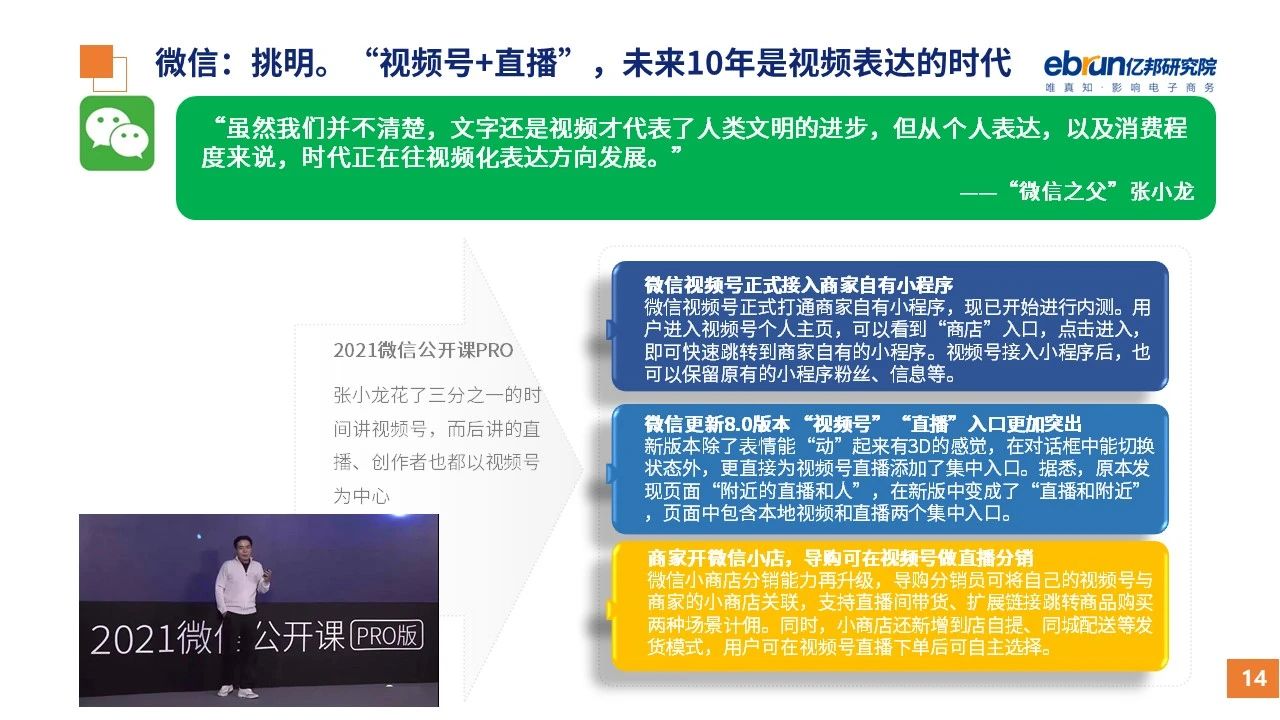 縱觀2021年1月,各平臺(tái)豐富自有生態(tài)布局,如淘寶直播(點(diǎn)淘)加入短視頻模式、騰訊重押視頻號(hào)、快手加碼電商和小程序、抖音推出支付等;視頻內(nèi)容成為各平臺(tái)未來重點(diǎn)發(fā)力方向;“九不得”新規(guī)發(fā)布后社區(qū)團(tuán)購仍熱情不減;國家和市場(chǎng)對(duì)互聯(lián)網(wǎng)巨頭和電商相關(guān)消費(fèi)加大監(jiān)管力度……你信和不信,你知道和不知道的,都在這份億邦動(dòng)力研究院正式發(fā)布的