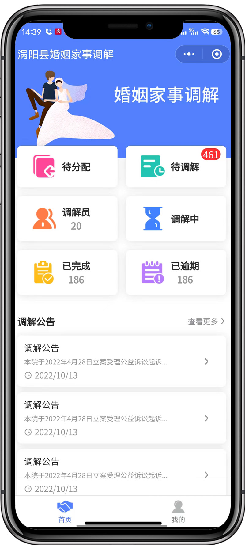 渦陽婚姻家事調(diào)解小程序二維碼?貫徹落實(shí)全國、省關(guān)于做好婚姻家庭糾紛預(yù)防化解工作意見文件精神的一項(xiàng)重要舉措。旨在以建立婚姻家庭糾紛調(diào)解中心為抓手,更好的開展婚姻家庭糾紛調(diào)解工作,達(dá)到預(yù)防化解婚姻家庭糾紛、促進(jìn)家庭和睦、維護(hù)社會和諧穩(wěn)定的目的。調(diào)解員線上接單調(diào)解婚姻家庭糾紛。